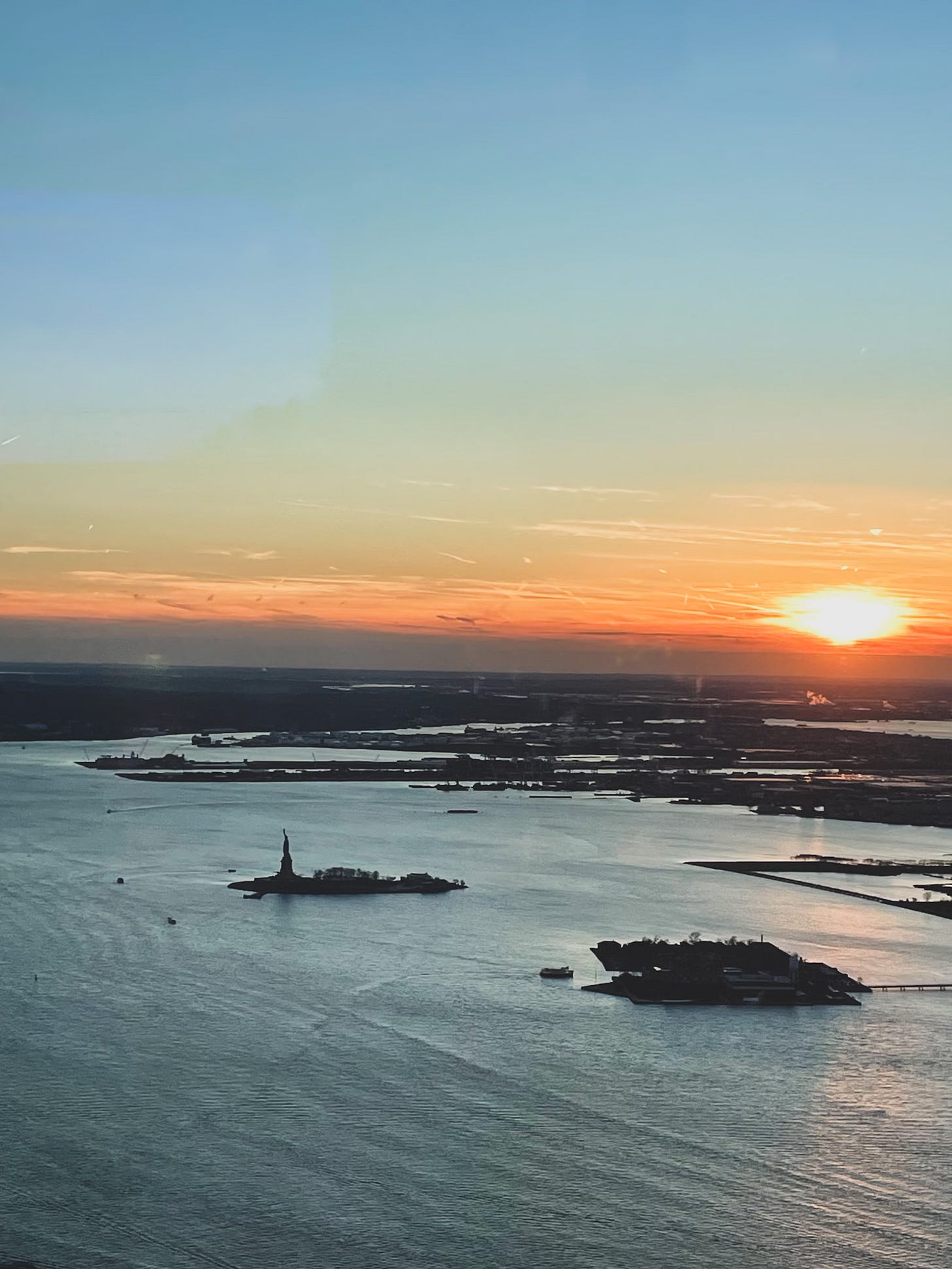 Once we were done we spent some time in the gift shop and then made our way to One World Trade Center where we had made reservations to go to the top. That appointment was at 3:00 and they give you two hours to explore. Going at this time of day was perfect for this time of year because we got to watch the sun set over the Hudson/Lady Liberty! The views are probably some of the best in the city and they also have a snack bar/restaurant at the top if you need to grab a snack (which we did).